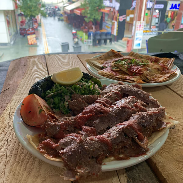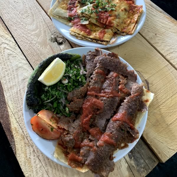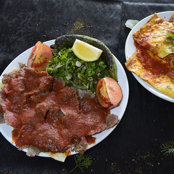 Tabakta soğan, maydanoz, özel sosumuz, ince kesilmiş bol et ile servis edilir.