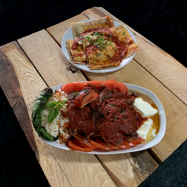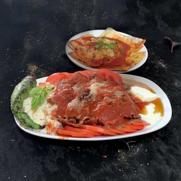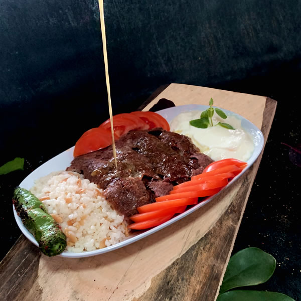 Türk mutfağının en meşhur lezzetlerinden biri olan iskender hem yoğurtlu hem pideli hem de pirinç pilavıyla servis ediliyor.